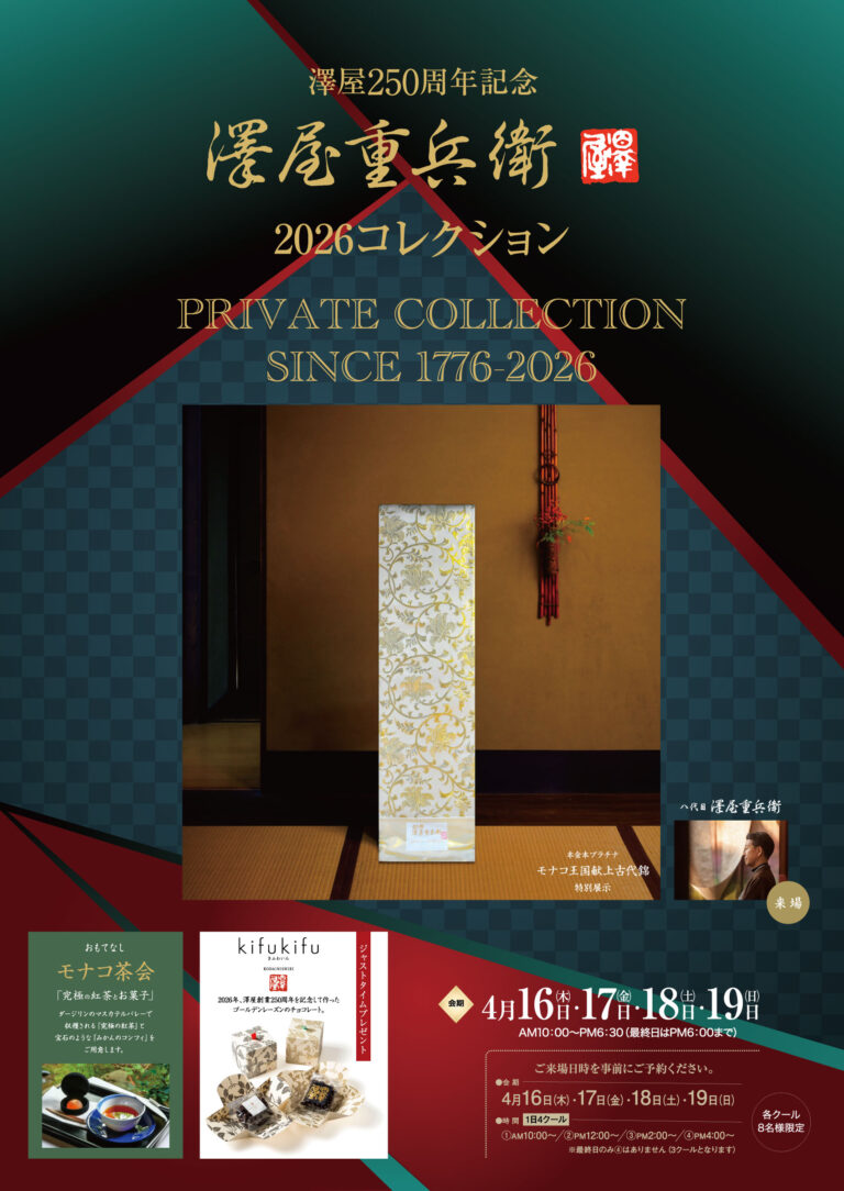 いつも「きもの処 にしむら」をご愛顧いただき、誠にありがとうございます。 この度、1776年(安永5年)の創業から節目となる250周年を迎える「澤屋」の特別展、「澤屋重兵衛 2026コレクション PRIVATE COLL […]